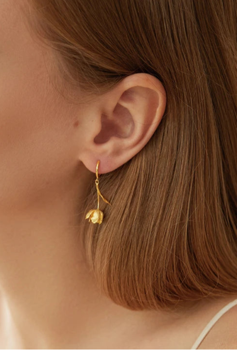 925 Sterling Silver Flower Dangle Earrings For Women Luxury Hoop Earring