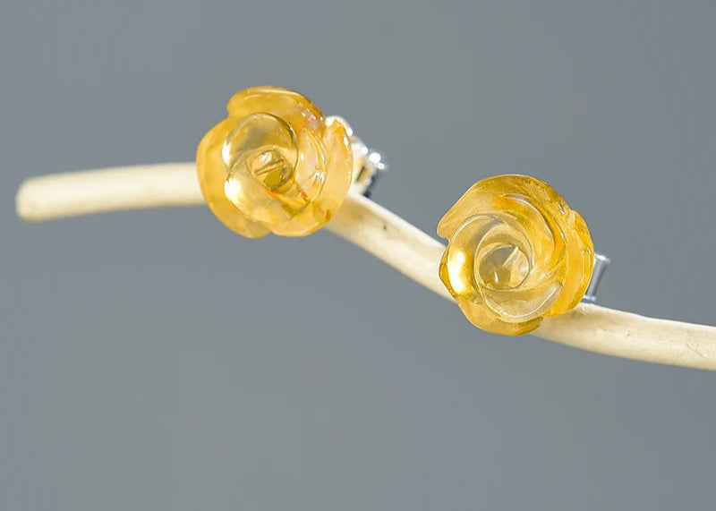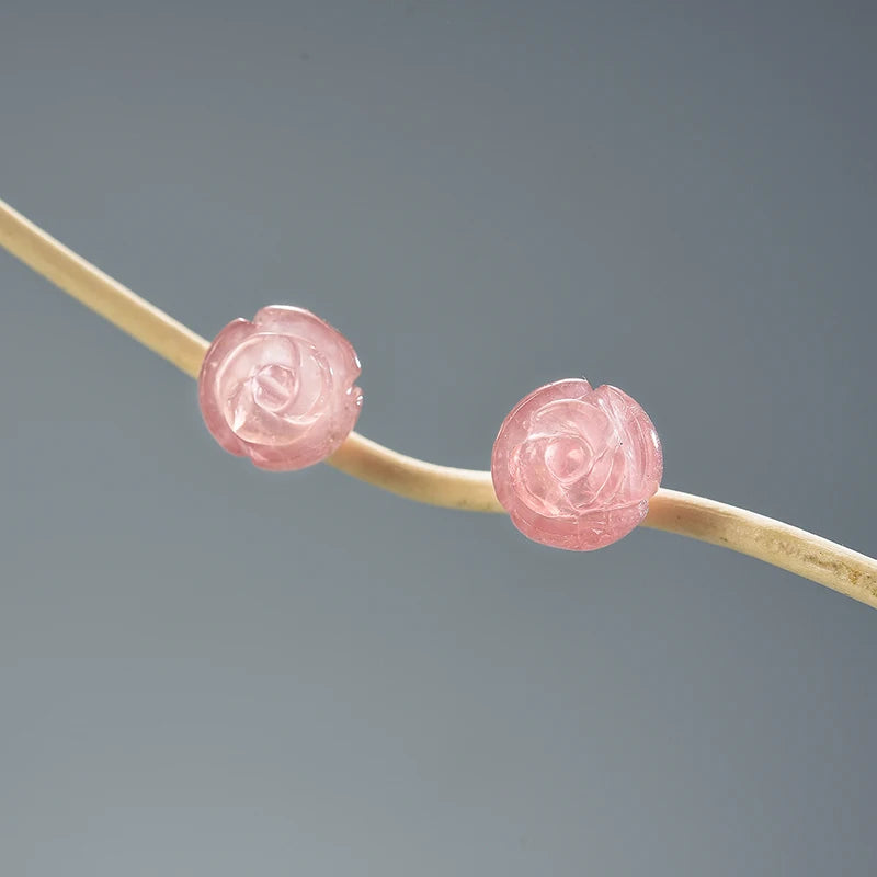 Natural Quartz Amethyst Rose Flower Stud Earrings Real 925 Sterling Silver Earrings for Women
